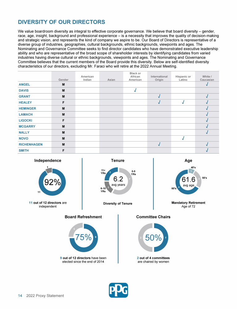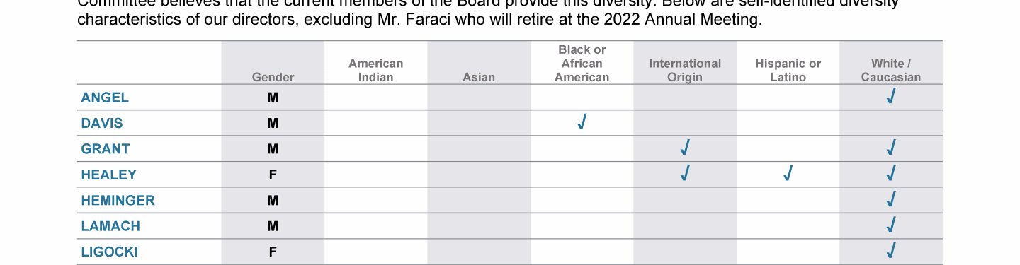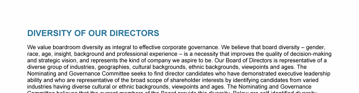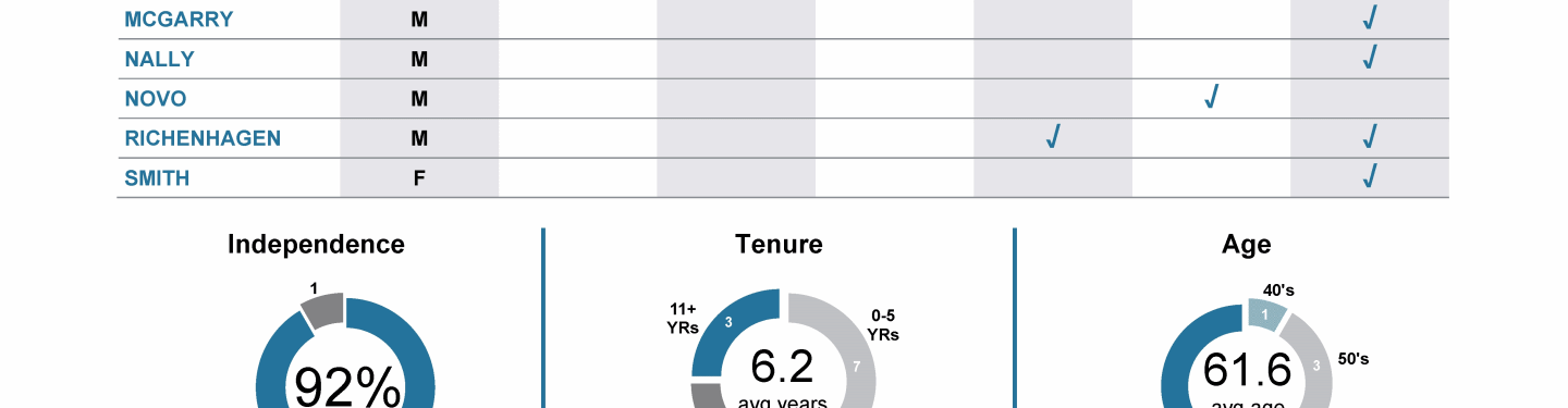 Review our directors' biographies, skills/qualifications, committees, and more in our interactive
