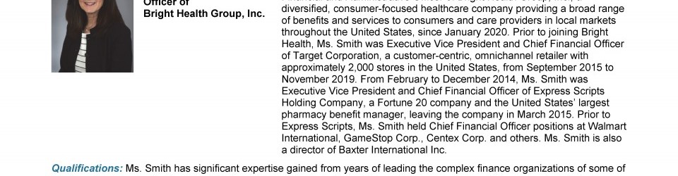 Review our directors' biographies, skills/qualifications, committees, and more in our interactive