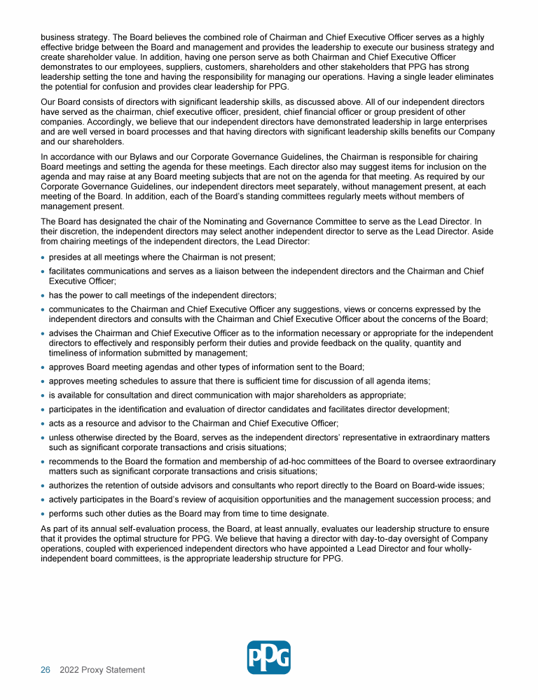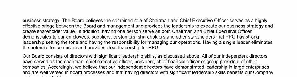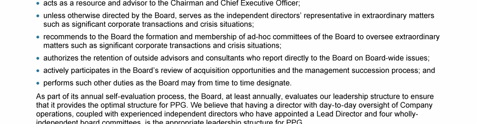 Board Oversight of PPG's Strategy