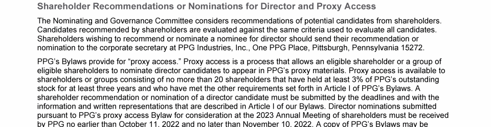 Shareholder Recommendations or Nominations for Director and Proxy Access