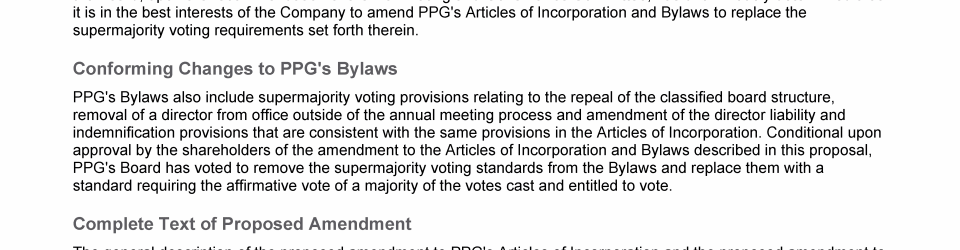 Proposal 4: Proposal to Amend the Articles of Incorporation and Bylaws to Replace the Supermajority Voting Requirements