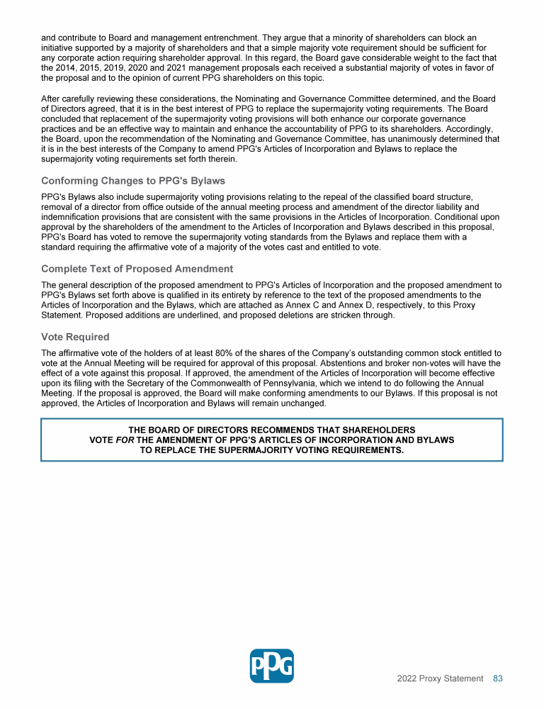 - Annex C - Proposed Amendment of the Articles of Incorporation to Replace the Supermajority Voting Requirements