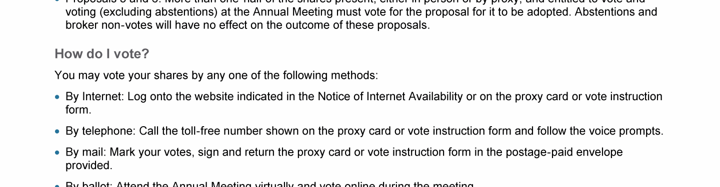 - Annex B - Proposed Amendment of the Articles of Incorporation to Declassify the Board of Directors