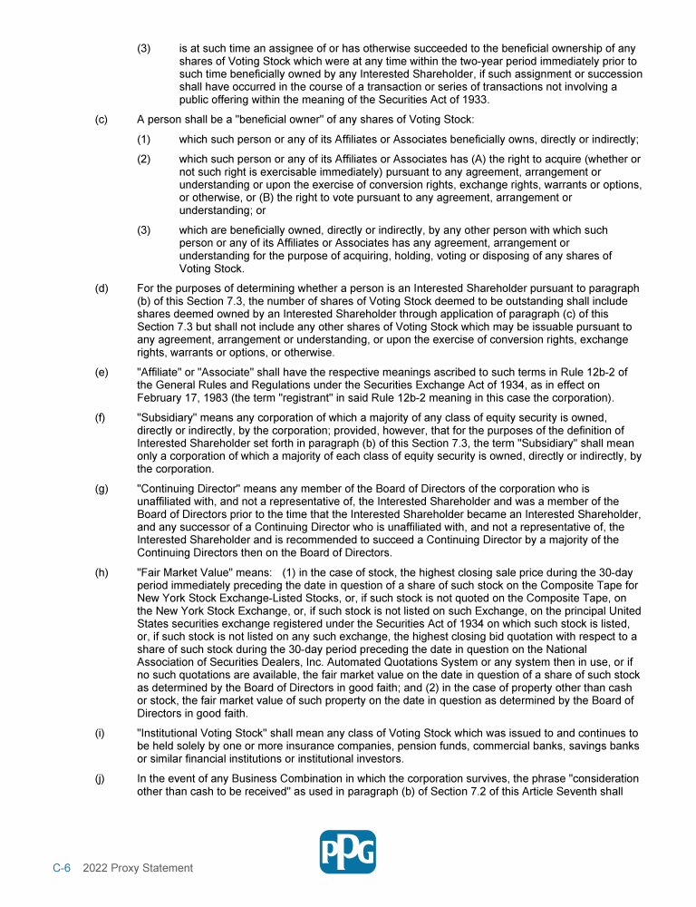 - Annex C - Proposed Amendment of the Articles of Incorporation to Replace the Supermajority Voting Requirements