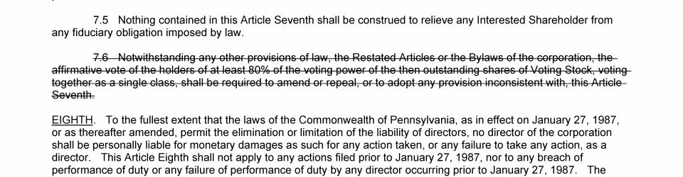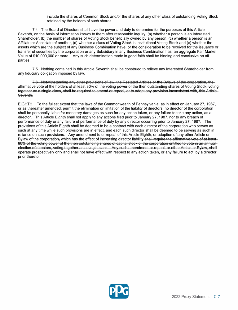 - Annex C - Proposed Amendment of the Articles of Incorporation to Replace the Supermajority Voting Requirements
