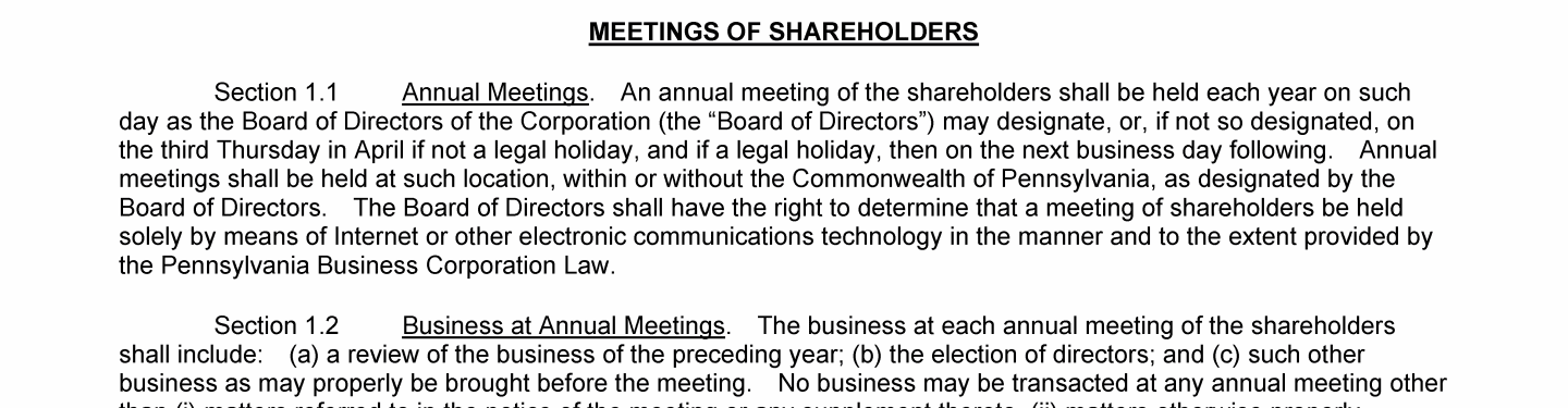 Notice of Annual Meeting of Shareholders