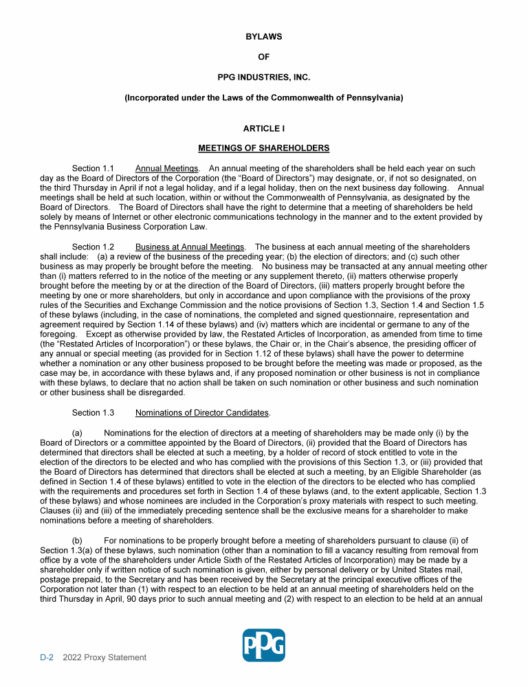 - Annex D - Proposed Amendment of the Bylaws to Replace the Supermajority Voting Requirements