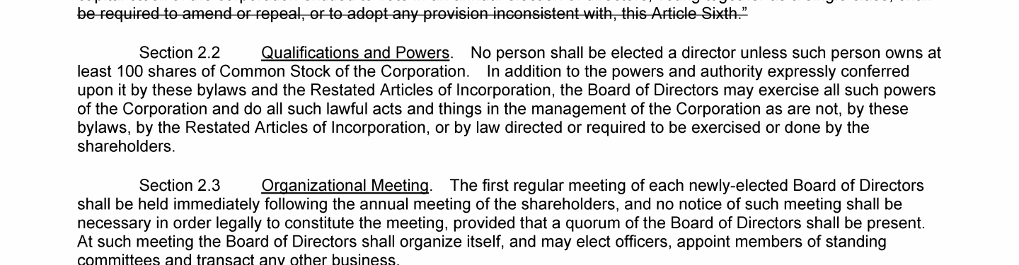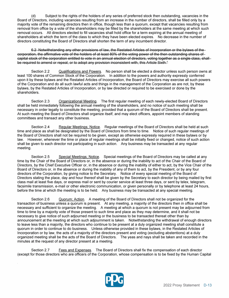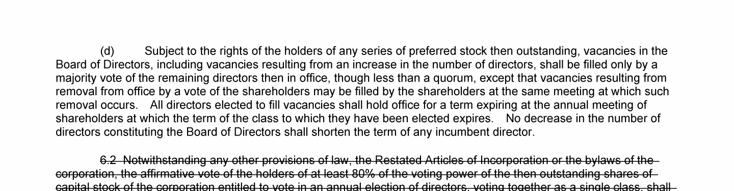 Annex D - Proposed Amendment of the Bylaws to Replace the Supermajority Voting Requirements