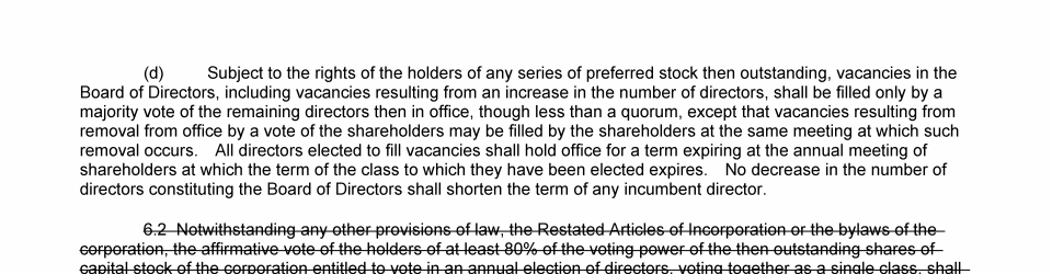 - Annex D - Proposed Amendment of the Bylaws to Replace the Supermajority Voting Requirements
