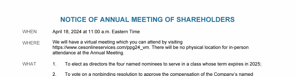 A Message from PPG's Independent Lead Director
