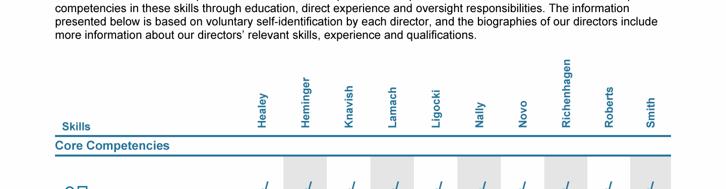 Review our director nominees' biographies, skills/qualifications, committees, and more in our interactive
