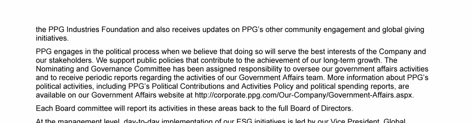 Click here to go to corporate.ppg.com/Our-Company/Government-Affairs.aspx Click here to go to corporate.ppg.com/Our-Company/Government-Affairs.aspx Click here to go to corporate.ppg.com/Our-Company/Government-Affairs.aspx Click here to go to corporate.ppg.com/Our-Company/Government-Affairs.aspx Click here to go to corporate.ppg.com/Our-Company/Government-Affairs.aspx