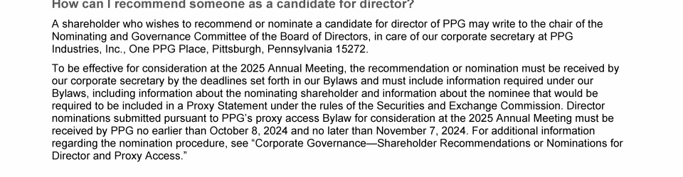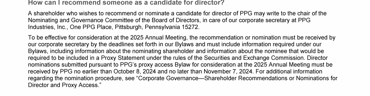 Shareholder Recommendations or Nominations for Director and Proxy Access