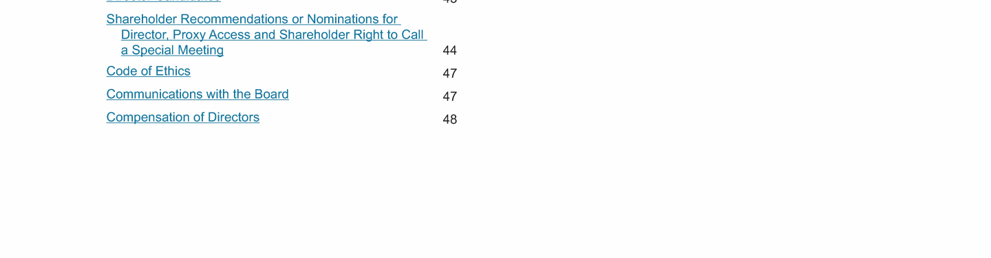 Shareholder Recommendations or Nominations for Director, Proxy Access and Shareholder Right to Call a Special Meeting
