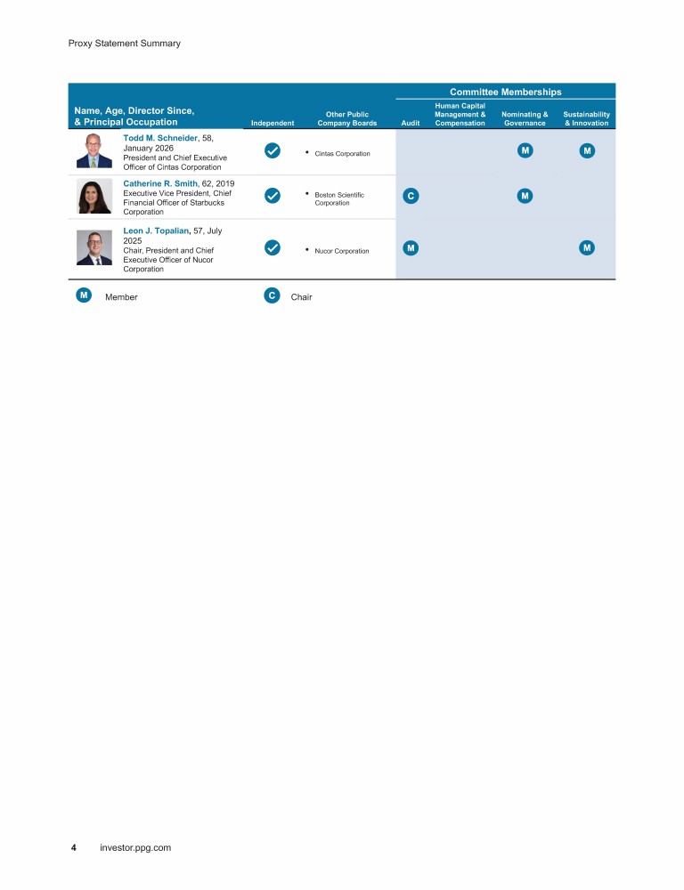 Review our director nominees' biographies, skills/qualifications, committees, and more in our interactive