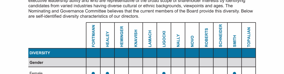 Review our director nominees' biographies, skills/qualifications, committees, and more in our interactive