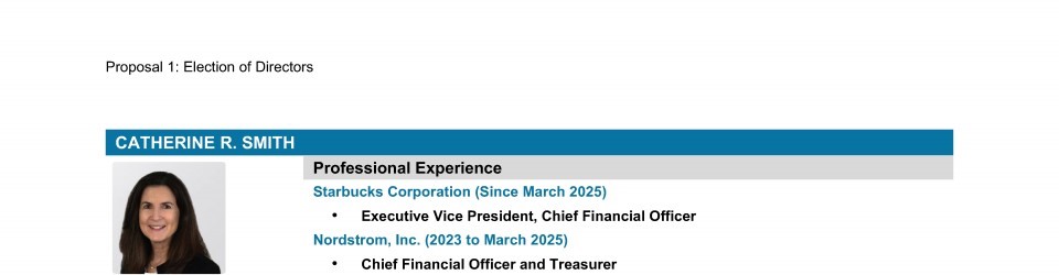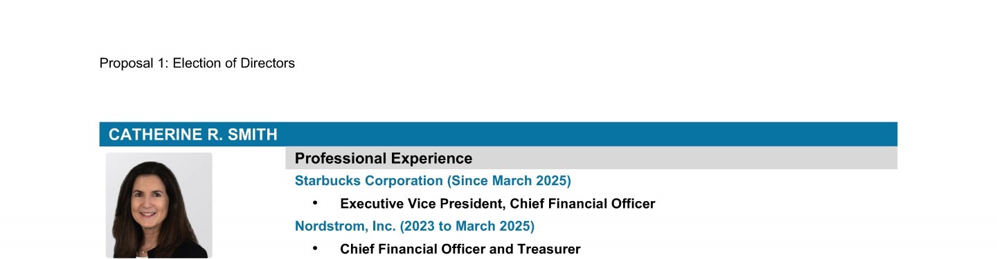Review our director nominees' biographies, skills/qualifications, committees, and more in our interactive