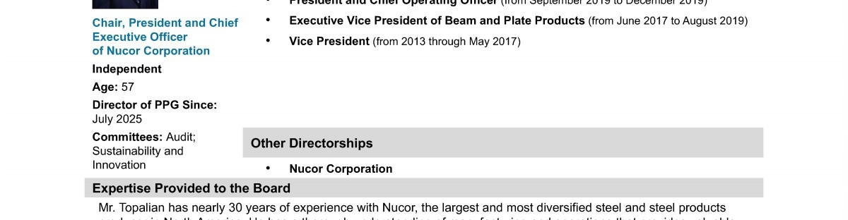 Board Oversight of PPG's Strategy