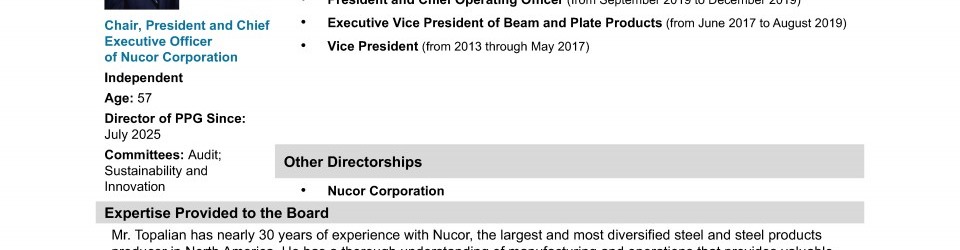 A Message from PPG's Independent Lead Director