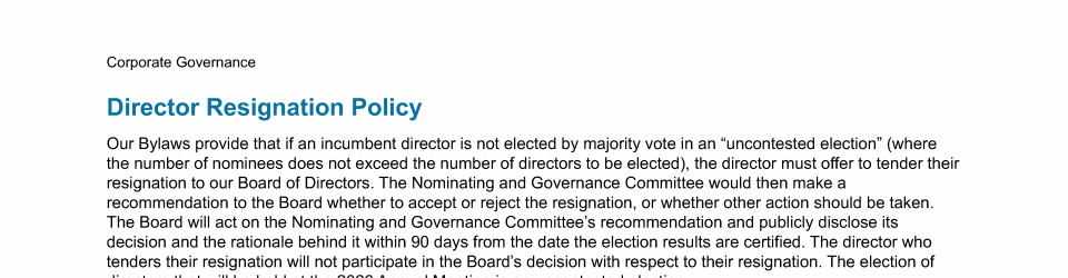 Shareholder Recommendations or Nominations for Director, Proxy Access and Shareholder Right to Call a Special Meeting