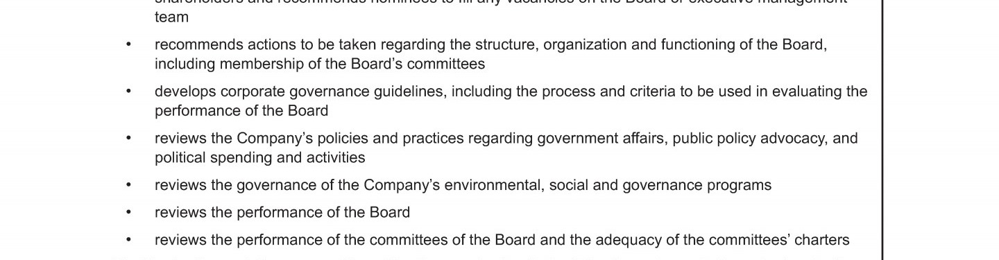 Review our director nominees' biographies, skills/qualifications, committees, and more in our interactive