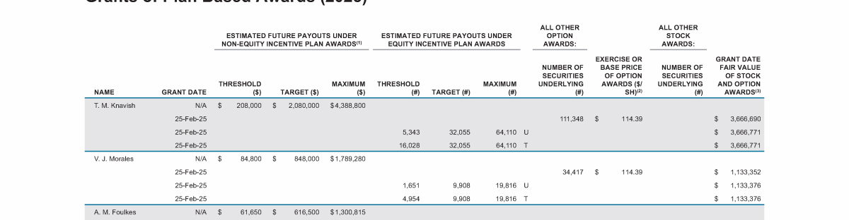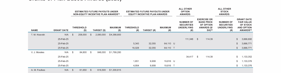 - Grants of Plan Based Awards (2025)