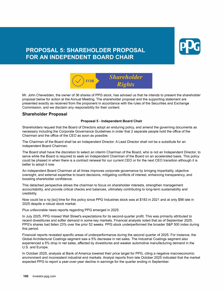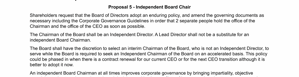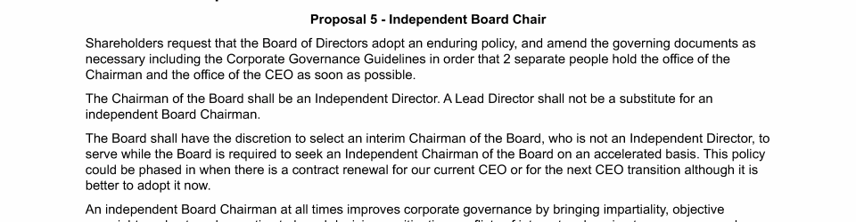 Proposal 5: Shareholder Proposal for an Independent Board Chair