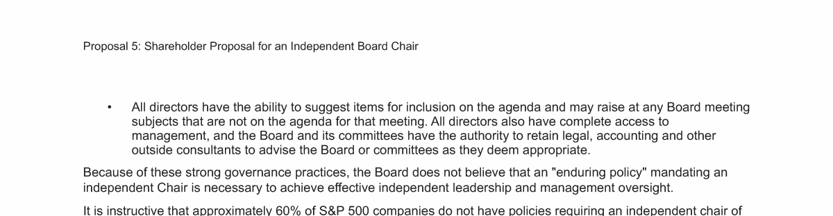 Proposal 5: Shareholder Proposal for an Independent Board Chair