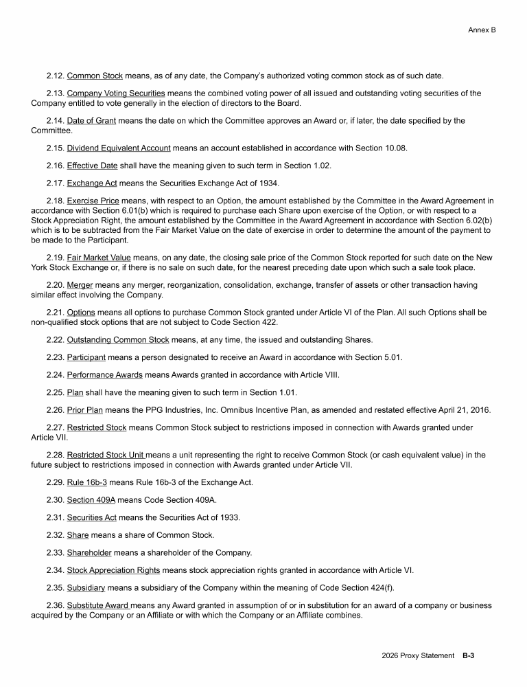 Annex B - PPG Industries, Inc. 2026 Omnibus Incentive Plan