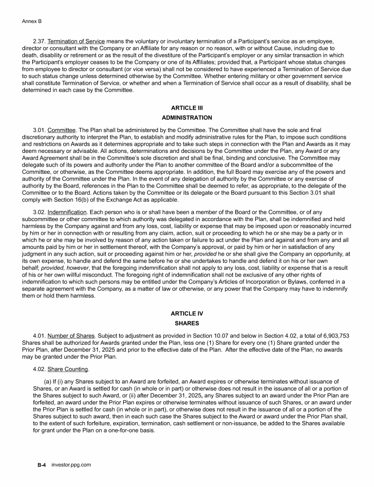 Annex B - PPG Industries, Inc. 2026 Omnibus Incentive Plan
